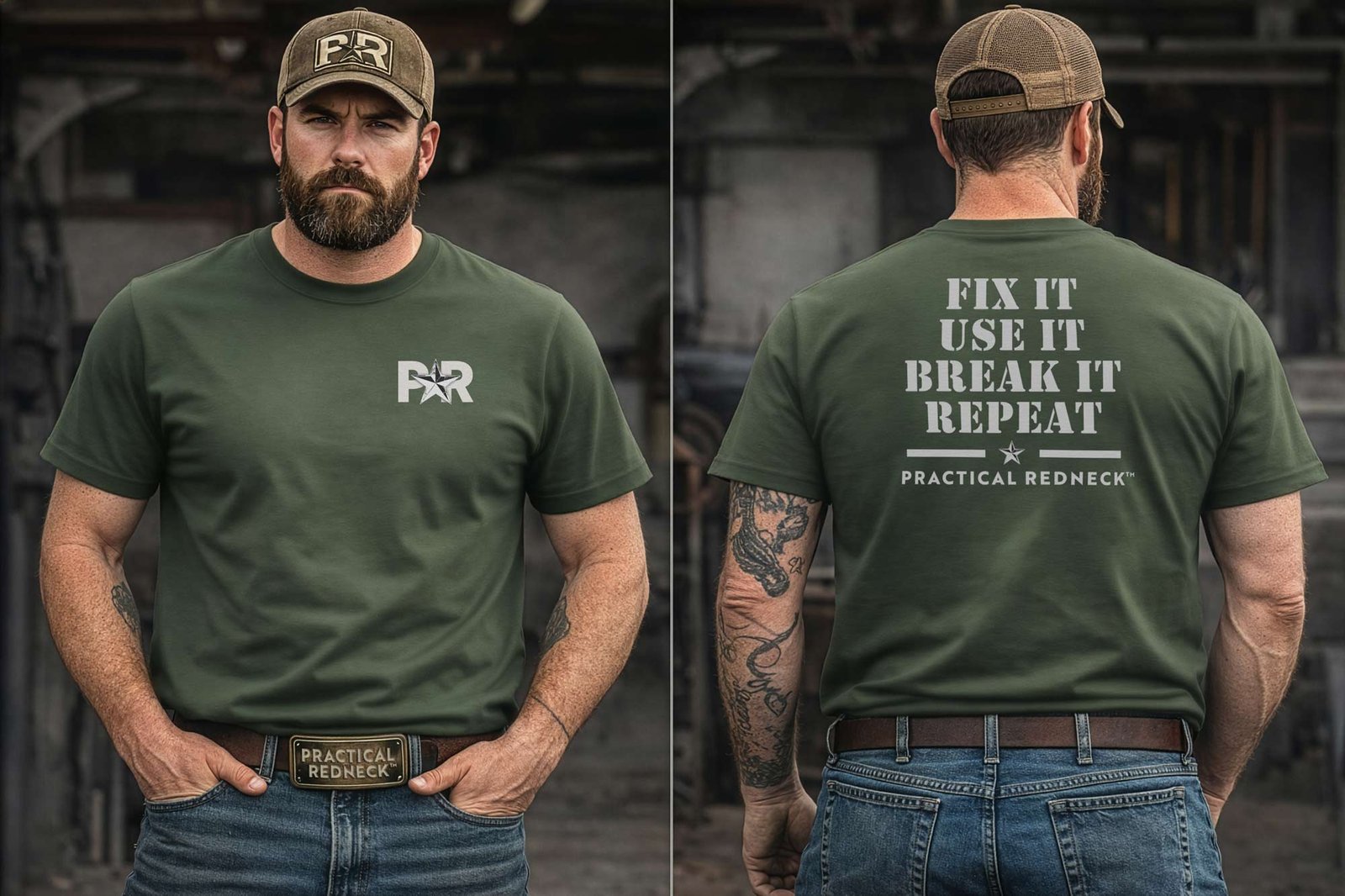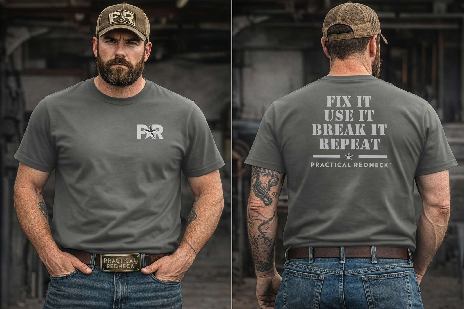 Clean, bold Practical Redneck™ branding