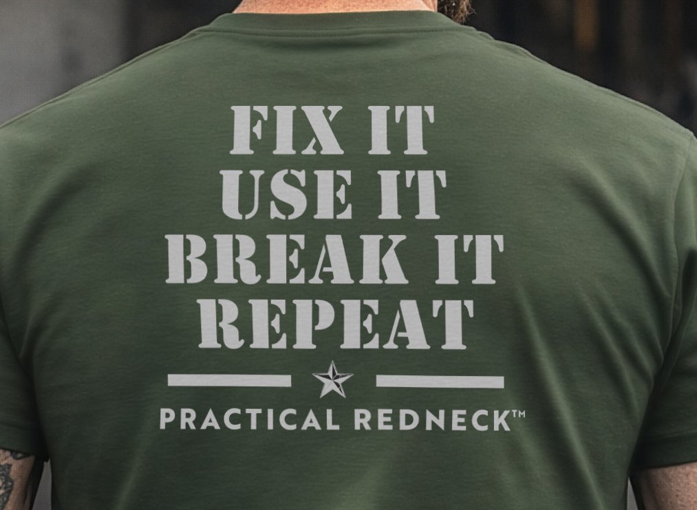 The Fix It. Use It. Break It. Repeat. shirt represents a mindset built on work ethic, resourcefulness, and doing more with what you've got.